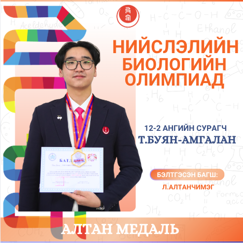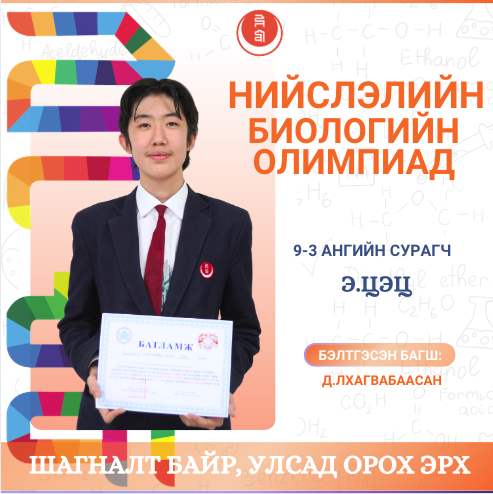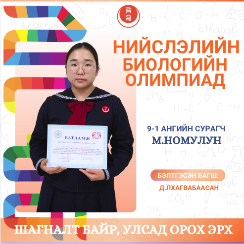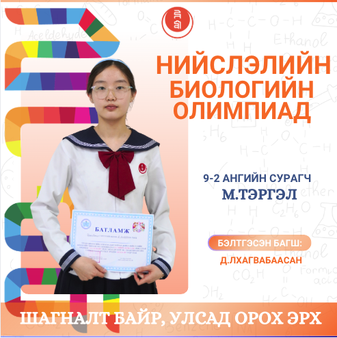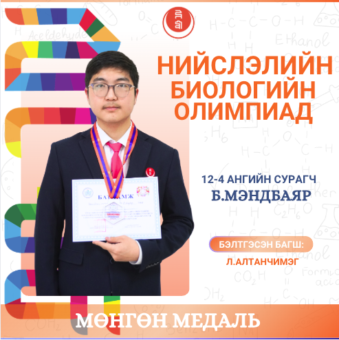 Мөн шавь нараа амжилттай бэлтгэсэн биологийн багш Д.Лхагвабаасан, Л.Алтанчимэг багш нартаа халуун баяр хүргэж, олимпиад, уралдаанд нь өндөр амжилт хүсье.